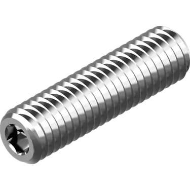 Med sin insexfattning möjliggör den rostfria stoppskruven exakt åtdragning och säker fixering, perfekt för applikationer där traditionella skruvförband inte är lämpliga eller möjliga.